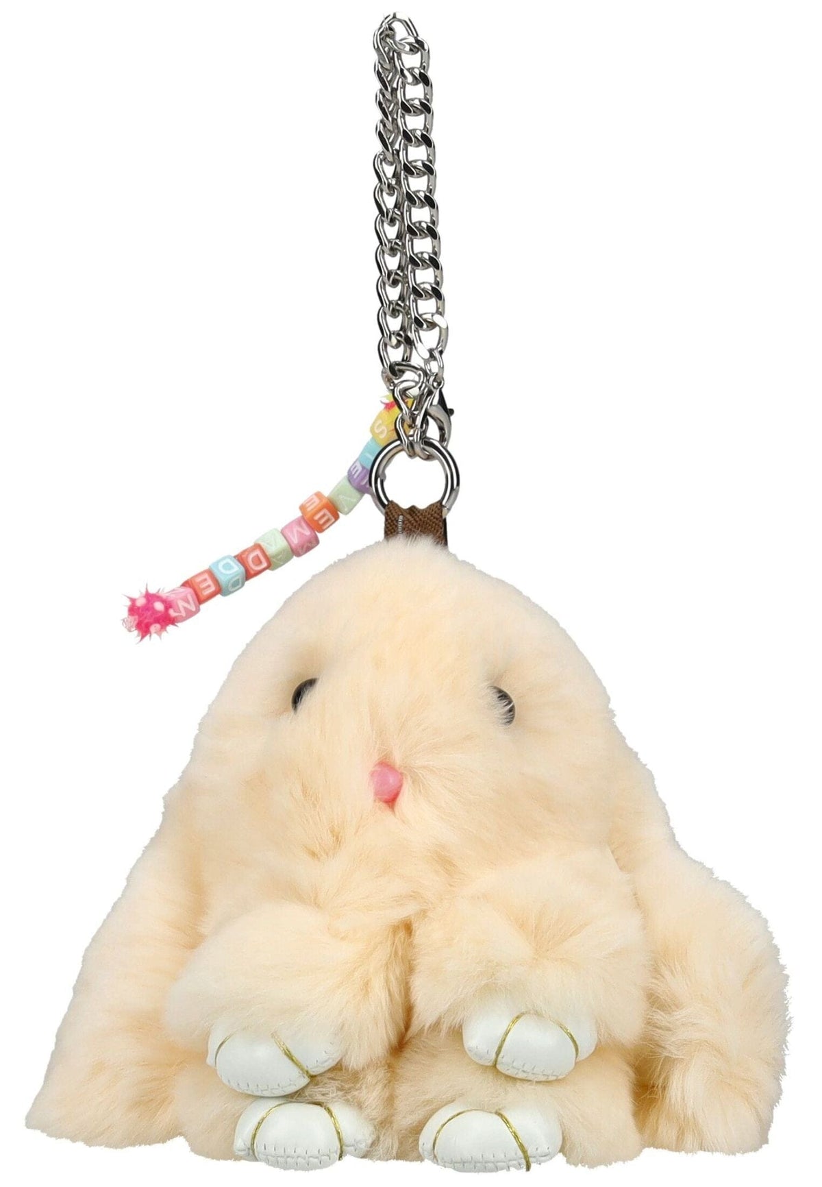 This cuddly keychain impresses with its plush design and charming details. The soft plush surface provides a pleasant feel, while the cute shape and little paw prints add a playful touch. Thanks to the sturdy metal chain and keyring, the keychain can be securely attached to bags, backpacks, or keys. A decorative beaded band with the Steve Madden logo gives the accessory a unique touch. Ideal as a fashionable accessory, a small gift, or a sweet companion on the go.