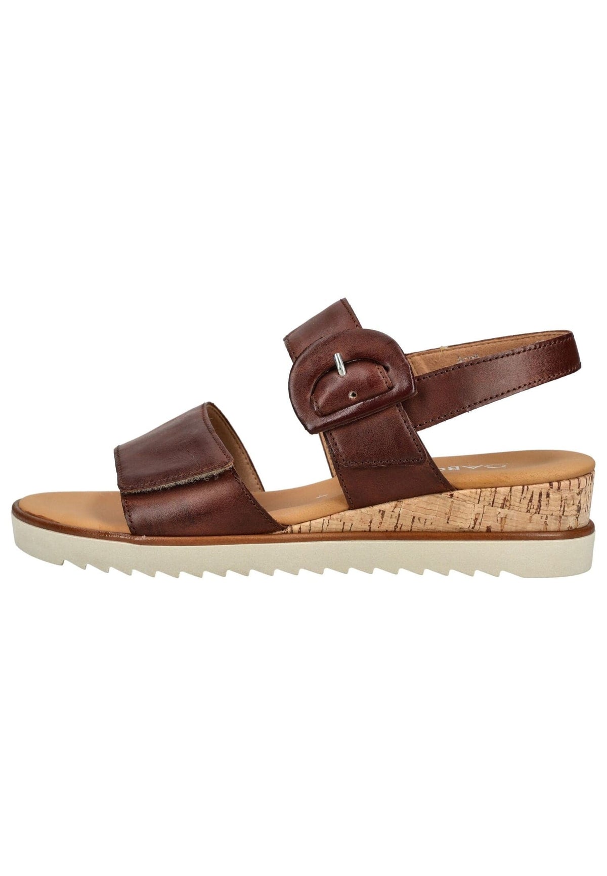 This sandal impresses with its successful combination of modern design and exceptional comfort. The wide strap across the forefoot ensures a comfortable fit, while the adjustable heel strap with its striking decorative buckle provides secure support and a customized fit. The softly padded footbed ensures comfortable walking, even on long days. The lightweight cork-look wedge sole with its profiled outsole gives the sandal a trendy look while also providing stability. A versatile companion that stylishly complements summer outfits.