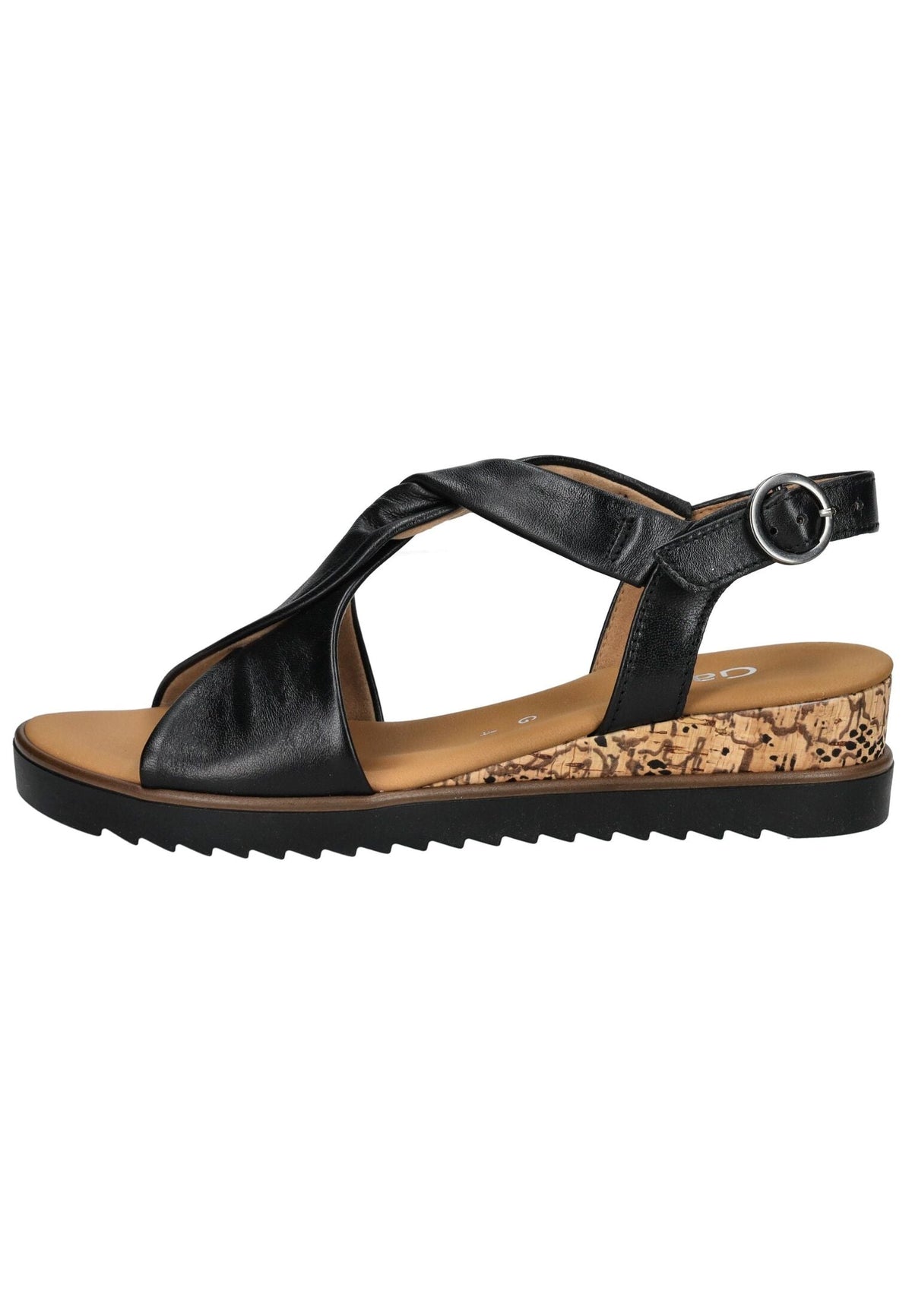 You'll achieve a beautiful look with this summery wedge sandal from Gabor Comfort, crafted from high-quality nappa leather. The distinctive feature of this model is the intertwined straps and cork-look midsole. The padded, moisture-regulating leather insole ensures maximum comfort.