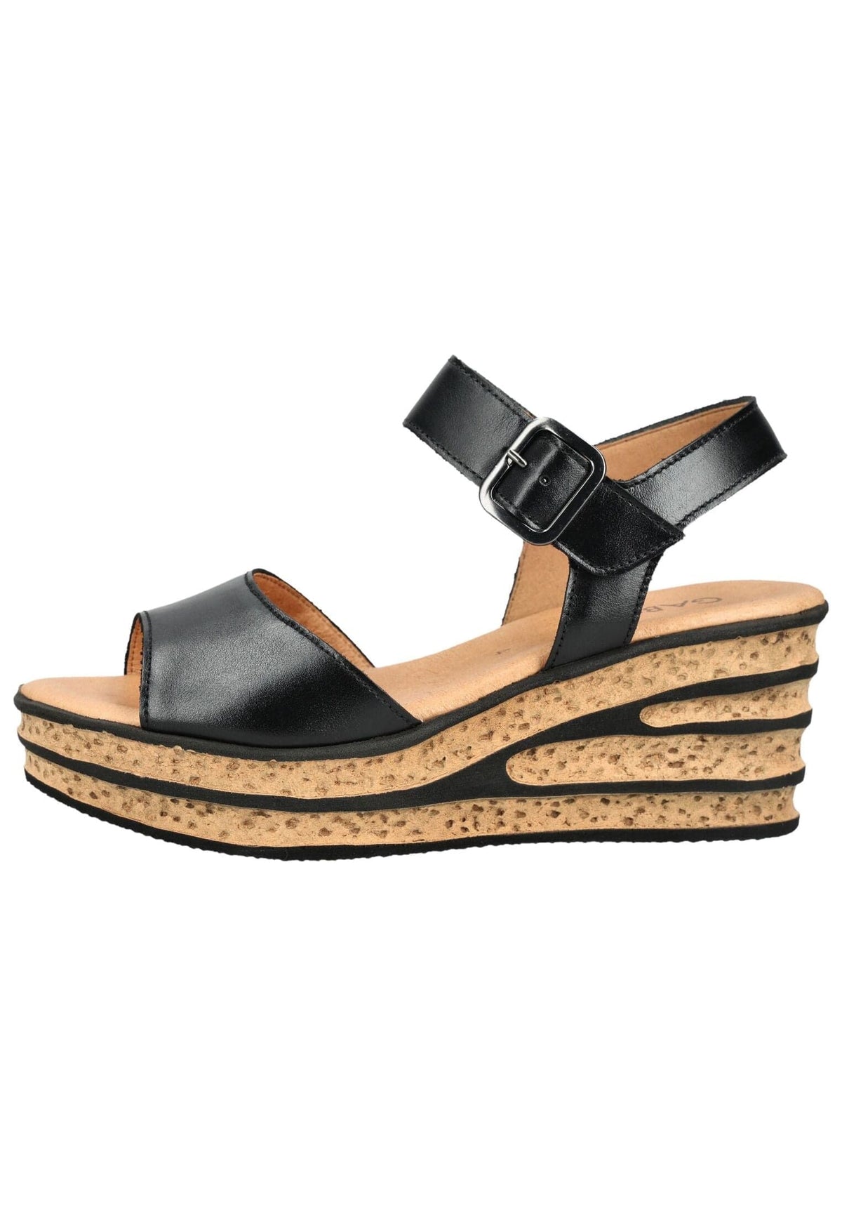This sandal combines modern design with exceptional comfort, quickly becoming a stylish companion for warm days. The high-quality upper material lends it an elegant look, while the wide front strap provides secure support. The adjustable ankle strap with its striking buckle allows for a customized fit and further emphasizes the fashionable character. The eye-catching, expressive cork-look platform sole with decorative stripe details adds a trendy touch while ensuring comfortable walking. Whether paired with summer dresses, flowing skirts, or casual outfits, this sandal adds a stylish accent and offers reliable everyday comfort.