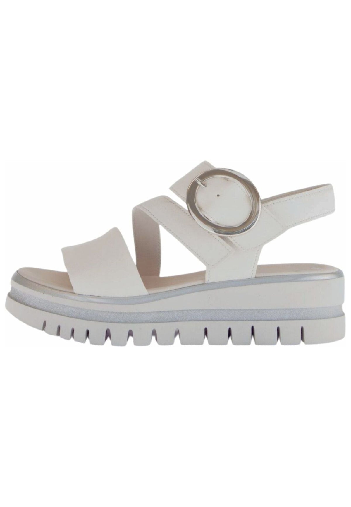 This trendy wedge sandal from Gabor, made of high-quality leather, has the potential to become your new favorite. The dynamic strap design and the wedge heel at a comfortable height are guaranteed to be an eye-catcher. The model can be individually adjusted to your foot using a hook-and-loop fastener. The padded leather insole with Best Fitting technology, which offers a wider tread, ensures maximum comfort.