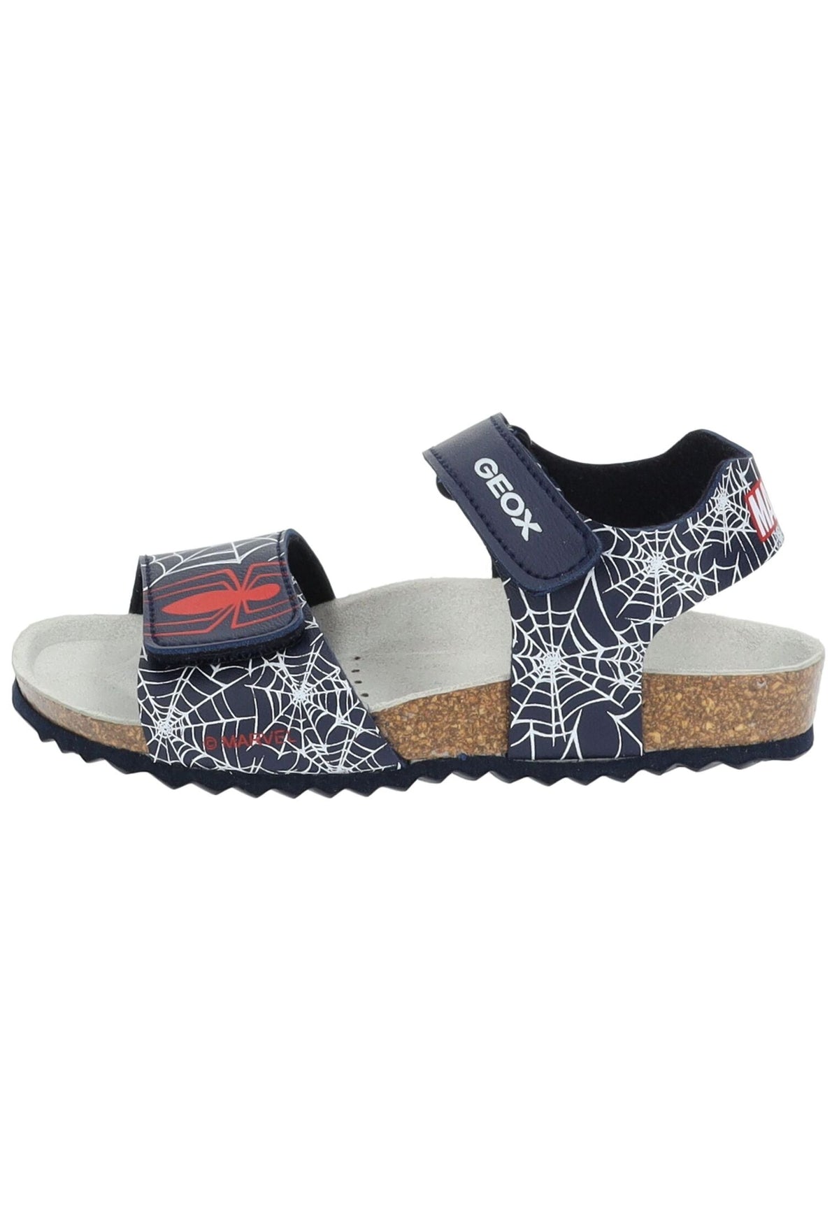 The breathable sandal from Geox with anatomical fit was created in collaboration with Marvel. Dedicated to Spider-Man fans, this sandal features graphics in the superhero's signature colors. Made from embossed leather-look material, the model is fully adjustable thanks to the Velcro closure and offers comfort and fun all summer long.