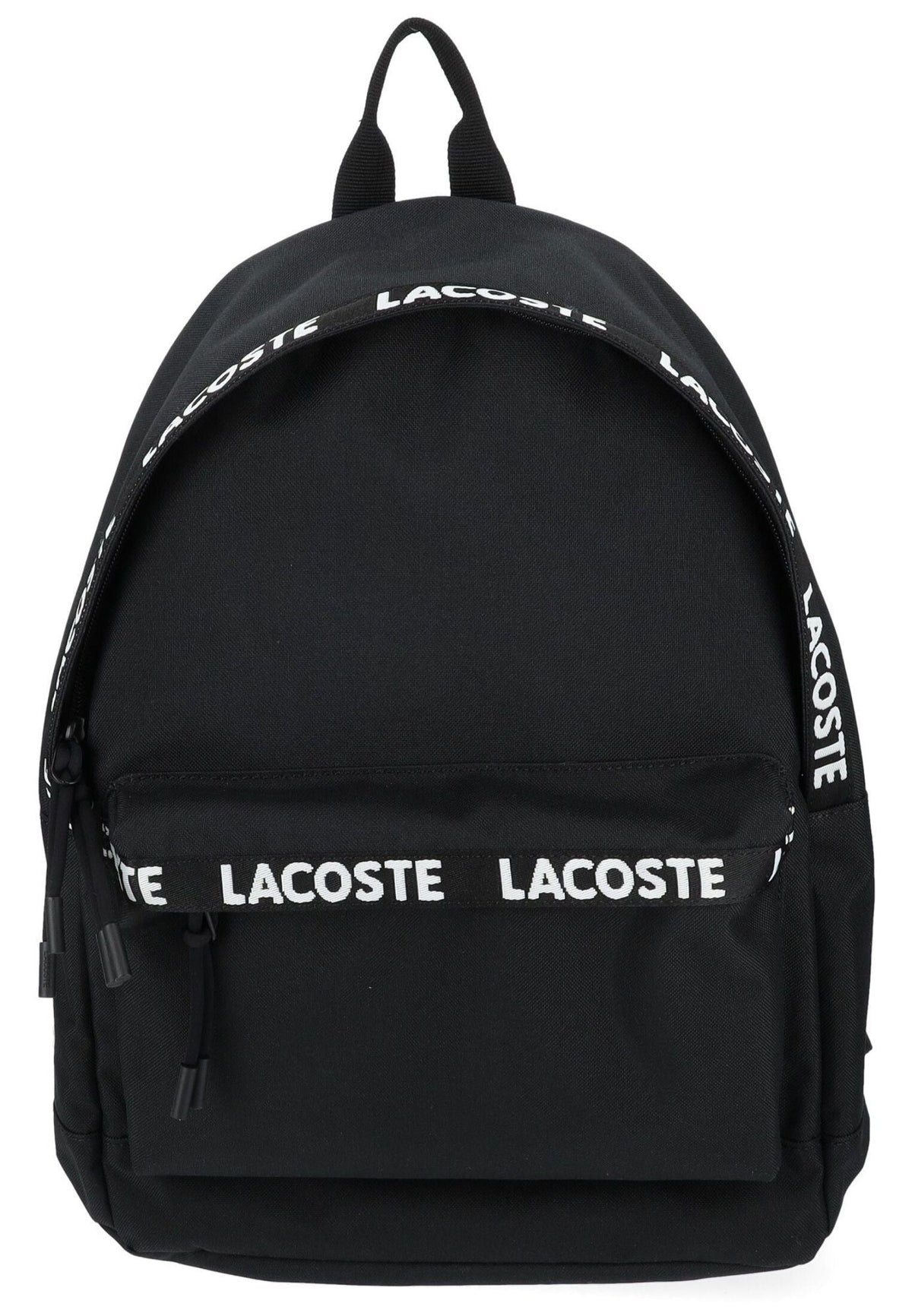 This modern backpack from Lacoste features a simple design and brand lettering. The additional front pocket offers plenty of storage space for small items.