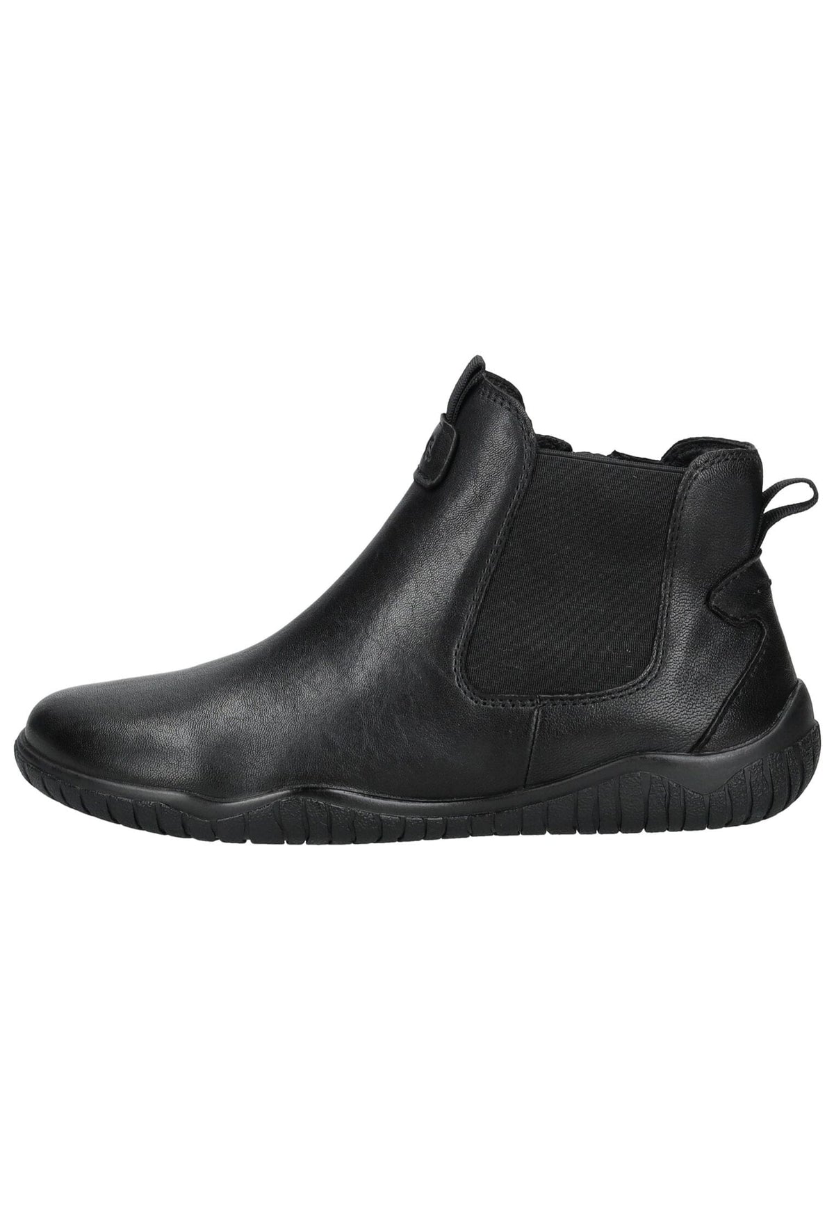 This black Chelsea boot impresses with simple elegance and well-designed comfort for everyday wear. The smooth, leather-look upper is stylish and easy to care for, while the side stretch inserts and practical zipper make it particularly comfortable to put on. The softly padded, removable footbed offers optimal wearing comfort and can be replaced with your own insoles if required. The flexible outsole ensures a secure grip, making the shoe an ideal companion for the office, leisure, or a city stroll. A versatile classic for fashion-conscious women who appreciate comfort and style.