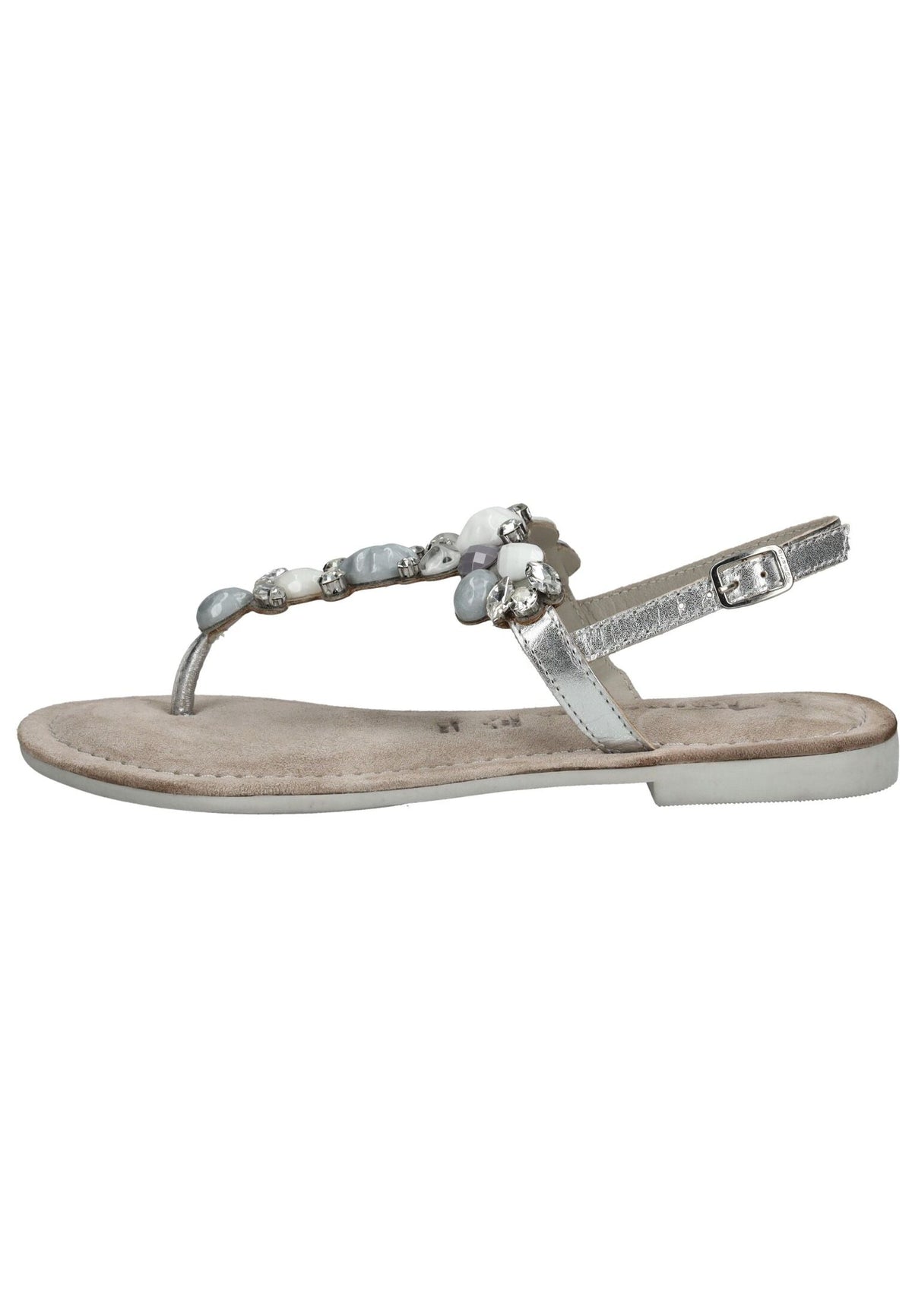 Turn heads with this summery thong sandal made of high-quality suede from Tamaris. The elaborately decorated straps with rhinestones make this sandal a truly eye-catching piece. The practical clasp ensures a secure fit.