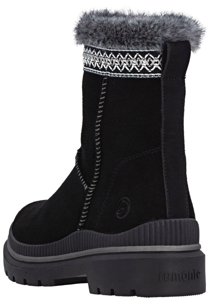 This cozy, warm, and stylish Remonte ankle boot with a zipper and removable insole provides exceptional comfort while walking. The overall look of this soft shoe is rounded off by decorative stitching on the shaft. The lambskin lining ensures your feet stay warm at all times.