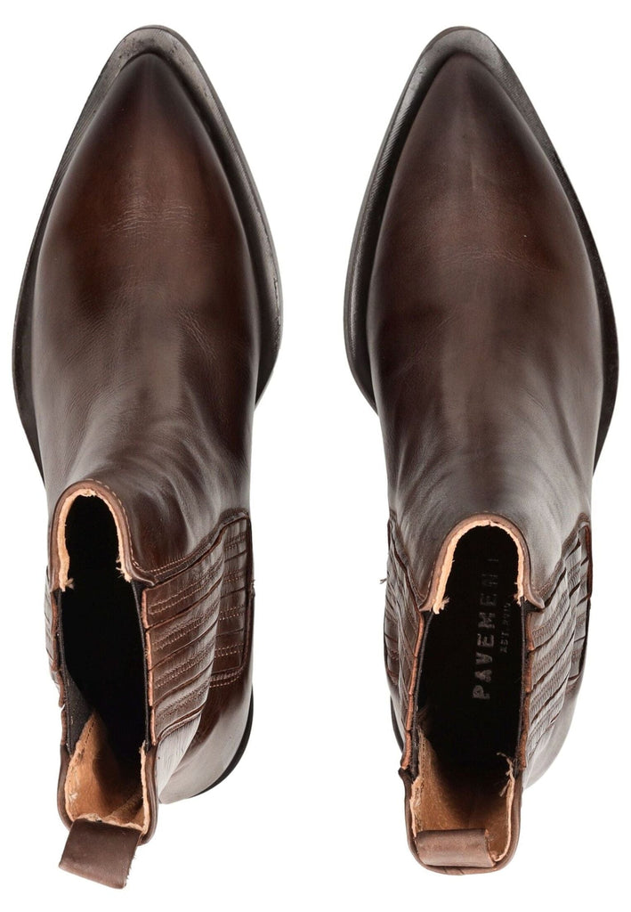 This ankle boot from Pavement features a pointed toe and a sturdy block heel, combining comfort with style. The practical slip-on closure makes it easy to put on and take off, while the elastic insert ensures a perfect fit and added comfort. The solid color design gives the boot a timeless look that's versatile.
