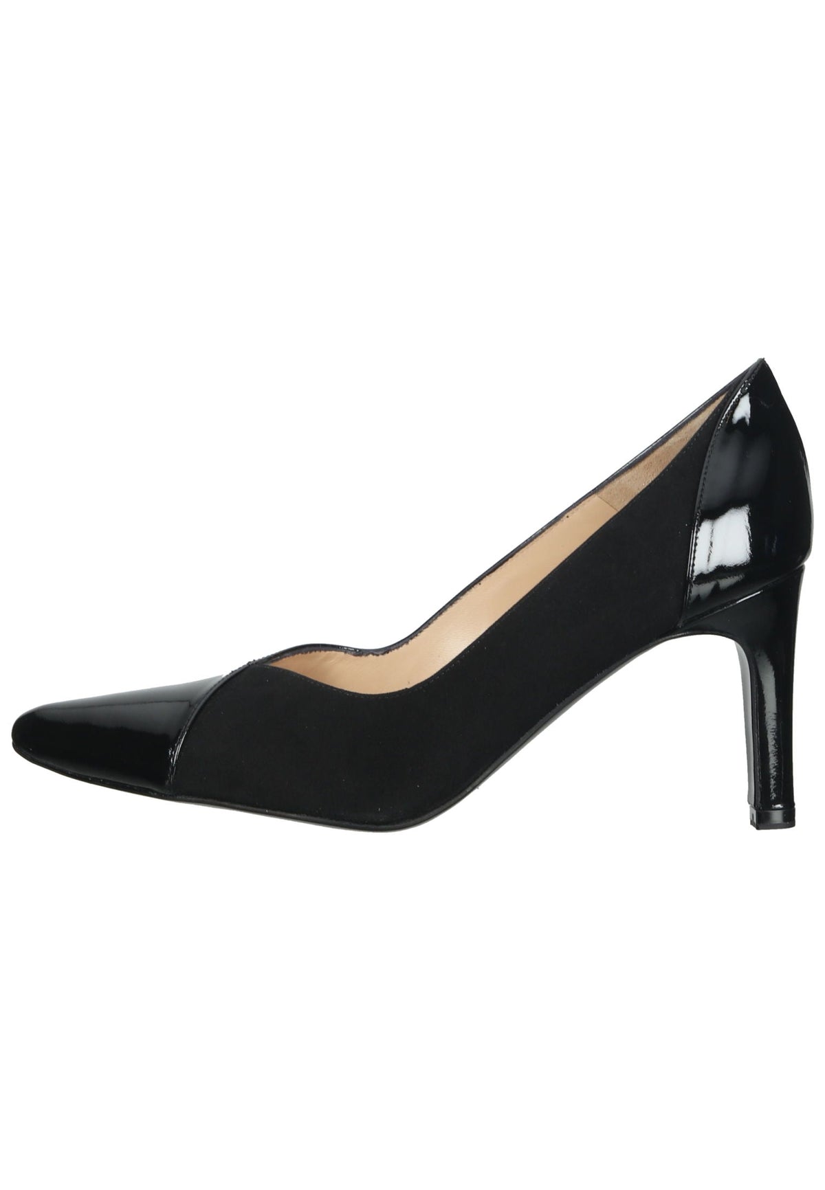 A chic high-heel pump made of soft suede by Peter Kaiser. Perfect with a pantsuit or dress, this pointed-toe style with individual patent leather details can be worn. The wide fit offers plenty of room for the foot, guaranteeing comfortable walking.