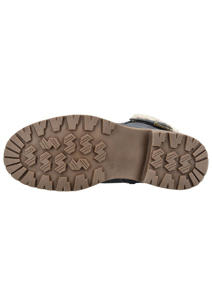 This sturdy lace-up ankle boot from Tom Tailor, with its outdoor look, combines functionality with fashionable design. The easy-care upper made of faux leather and textile is stylishly complemented by striking contrasting stitching and decorative details like the buckle on the shaft. The warm faux fur lining provides cozy warmth on cold days, while the treaded outsole offers secure grip on various surfaces. It also features a zipper closure. Ideal for everyday wear, walks, or winter casual looks.