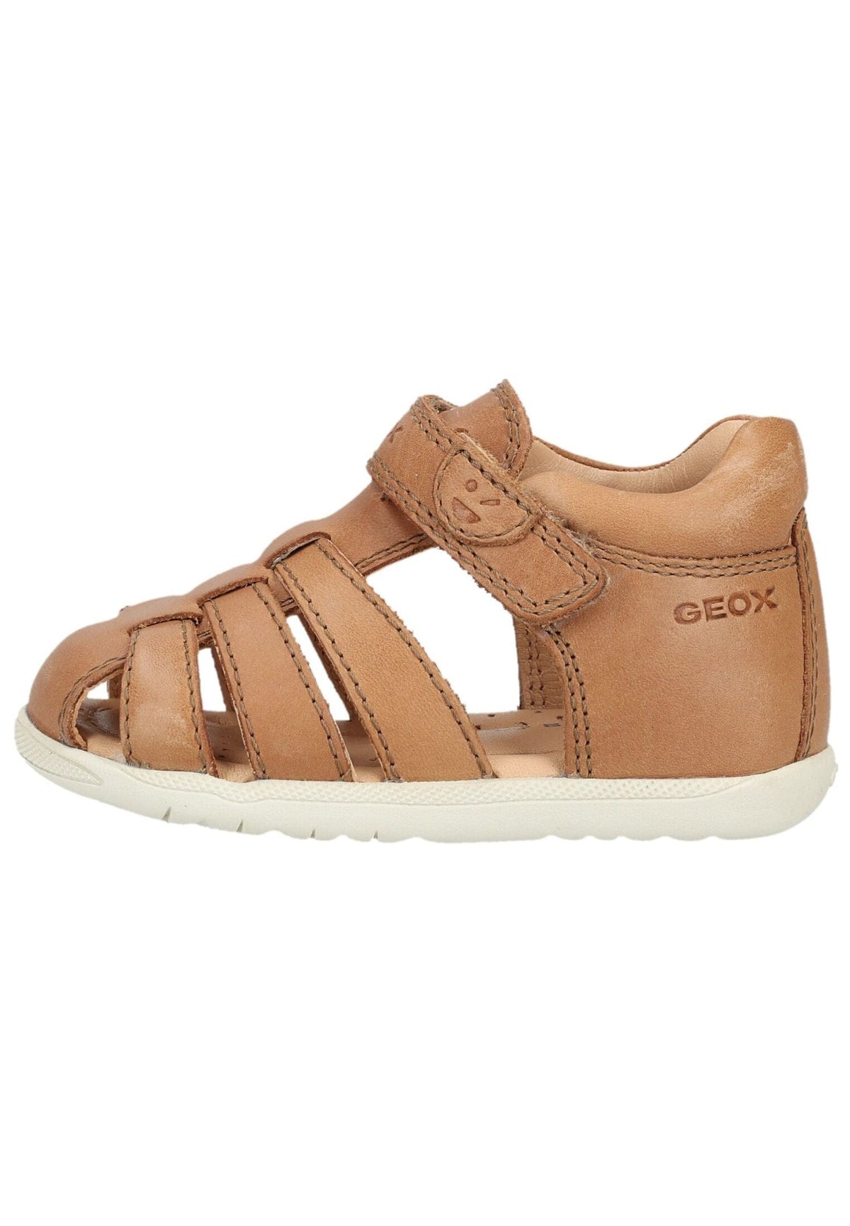 Geox's breathable yet functional first-walking sandal, with its cushioned insole and reinforced toe and heel caps, is perfect for active kids and provides excellent support for even the most boisterous play. This playful and attractive shoe also features a Velcro closure and is made of the softest leather.