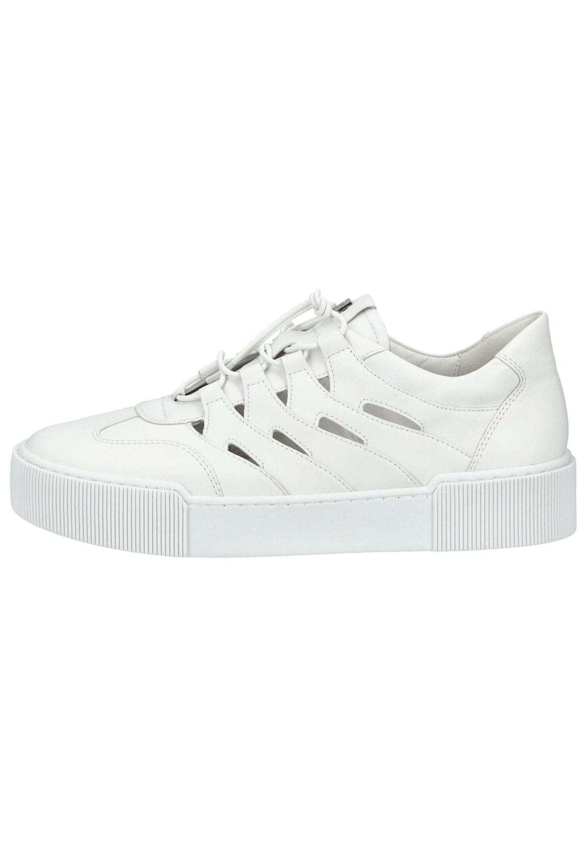 Modern platform sneaker from Högl made of high-quality white smooth leather with decorative cut-outs, sporty lacing and distinctive profile sole for a trendy look and comfortable wear.