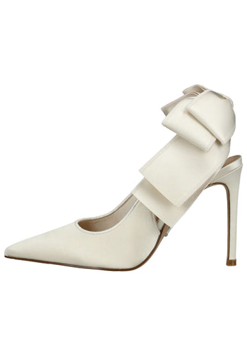 This elegant women's pump impresses with its feminine elegance and a touch of extravagance. The pointed design creates a slim silhouette, while the high heel visually lengthens the legs. A special highlight is the large, decorative bow on the heel, which gives the shoe a festive touch. Perfect for special occasions such as weddings, parties, or elegant evening events – a shoe that stylishly rounds off any outfit.