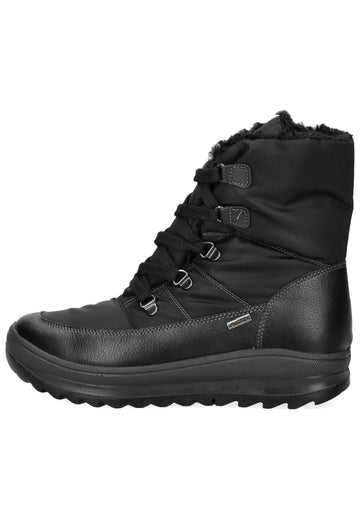 These robust women's winter boots combine functionality and comfort in a modern look. The cozy warm lining keeps your feet comfortably warm, even in freezing temperatures. The removable footbed provides personalized comfort and is ideal for your own insoles. Thanks to the weatherproof TEX membrane, you'll stay dry in snow and rain.