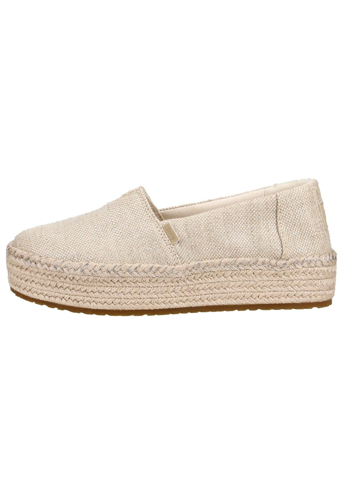 The TOMS espadrille impresses with its summery lightness and modern design. The textile upper ensures a comfortable feel, while the characteristic jute trim stylishly underscores the classic espadrille style. The convenient slip-on design allows for easy on and off, making this shoe the perfect companion for warm days. Equipped with a practical removable footbed, the shoe offers additional comfort and the option of using custom orthotics. The flexible outsole completes the functional design and ensures a comfortable walking experience for everyday wear.