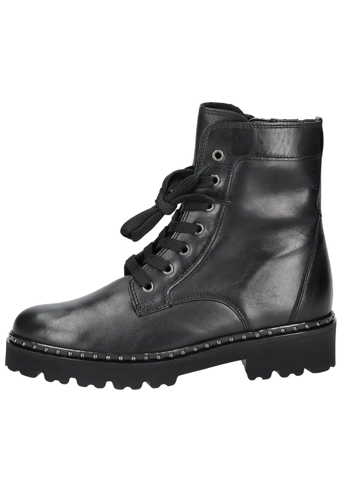 This trendy leather lace-up ankle boot from Gabor impresses with its stylish details. The delicate rivets along the sole are a special highlight. The fluffy textile lining inside ensures a pleasant foot climate. The removable insole allows for easy replacement when needed. An additional zipper makes it easier to get in and perfectly complements the lacing.