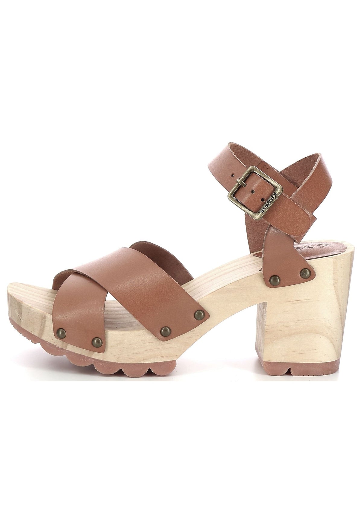 Experience this season's latest trend with this stylish clog from Kickers. The upper is made of high-quality leather. The look is rounded off by the signature wooden midsole. The crisscross front straps are a real eye-catcher.