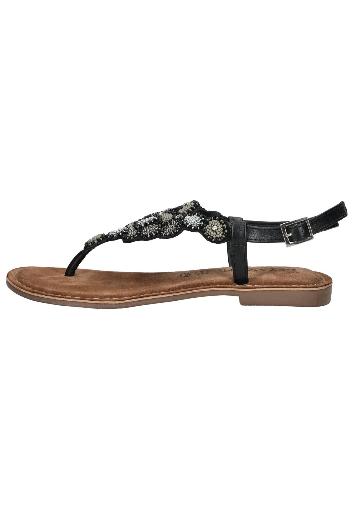 This beautiful toe-separator from Lazamani can be worn both casually and for special occasions. The elegant overall look of these fashionable shoes is complemented by a delicate stone embellishment, making them an absolute must-have for this season. A delicate buckle on the strap allows the model to be perfectly adjusted to your foot. The padded leather insole also ensures a comfortable fit. Whether worn with jeans, a dress, or a skirt, these sandals will perfectly complete any look.