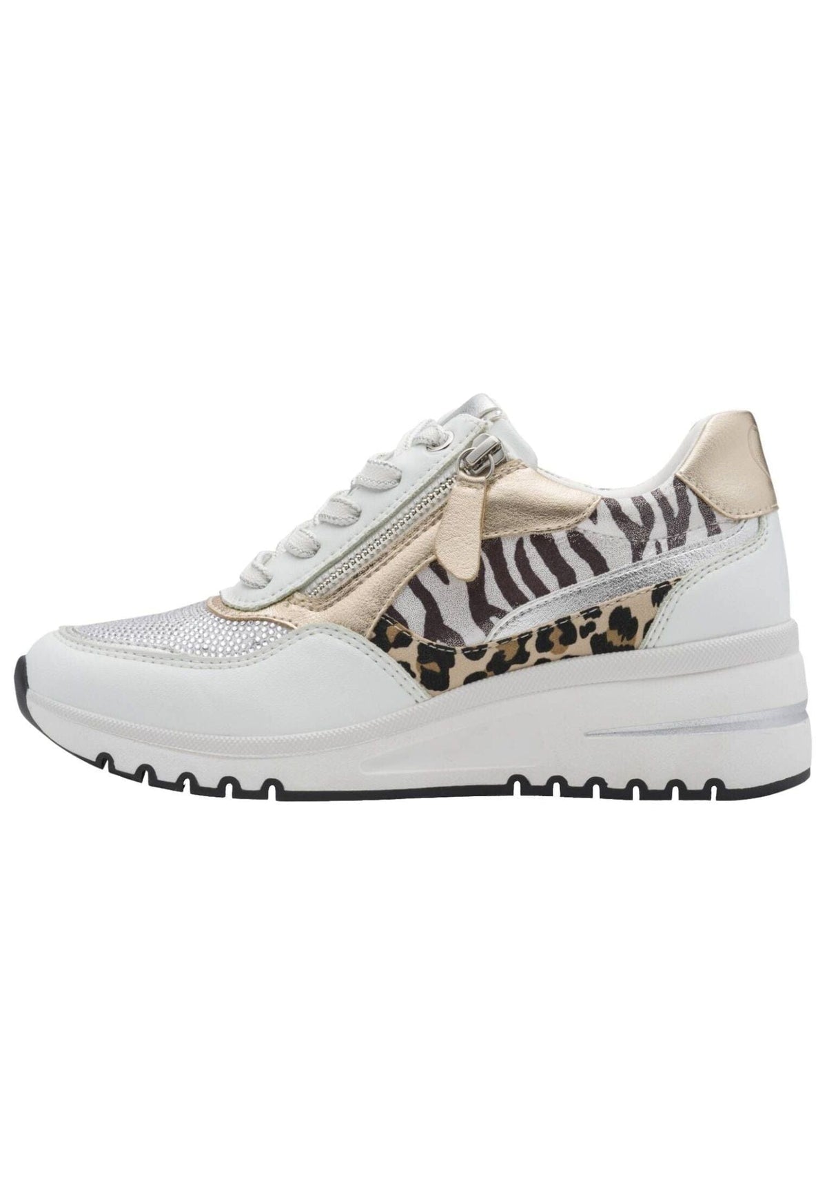 This sneaker from Marco Tozzi impresses with its successful combination of sporty design and fashionable details. The harmoniously coordinated material inserts and decorative accents give the shoe a trendy look, while the side zipper allows for easy on and off. The profiled outsole provides secure grip and underscores the dynamic appearance. The integrated, removable insole is particularly practical, as it can be easily replaced if needed, offering customized comfort – ideal for long days in style and comfort.