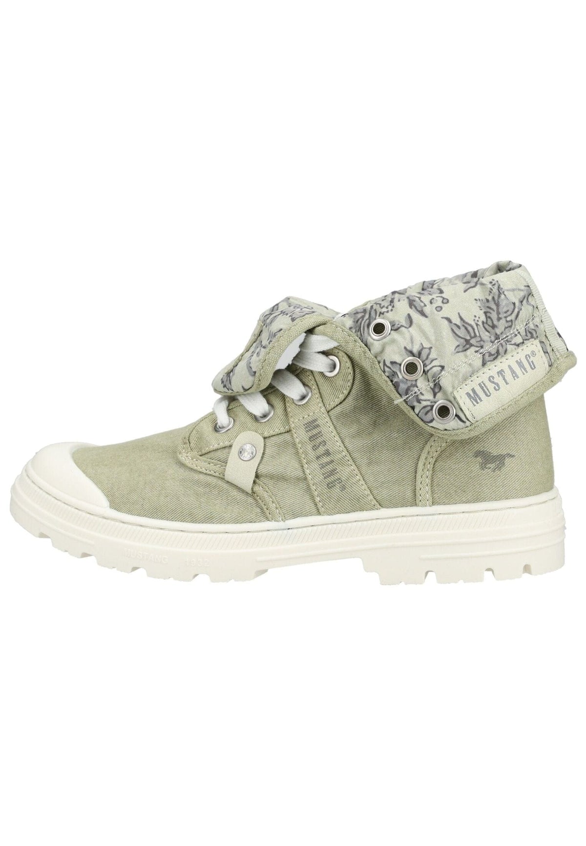 This Mustang sneaker impresses with its casual design and exceptional comfort. The model features a decorative floral lining that adds a special touch. Its versatility is undeniable: the upper can be worn casually folded down, as shown in the picture, or folded all the way up and laced up for two different looks. A logo detail on the side and the signature brand patch on the upper underscore the authentic style. The robust, profiled outsole provides excellent grip for everyday wear, while the comfortable upper and snug fit ensure a thoroughly enjoyable experience. Whether paired with jeans, trousers, or a skirt, this Mustang sneaker adds a modern, sporty touch to a variety of casual outfits.