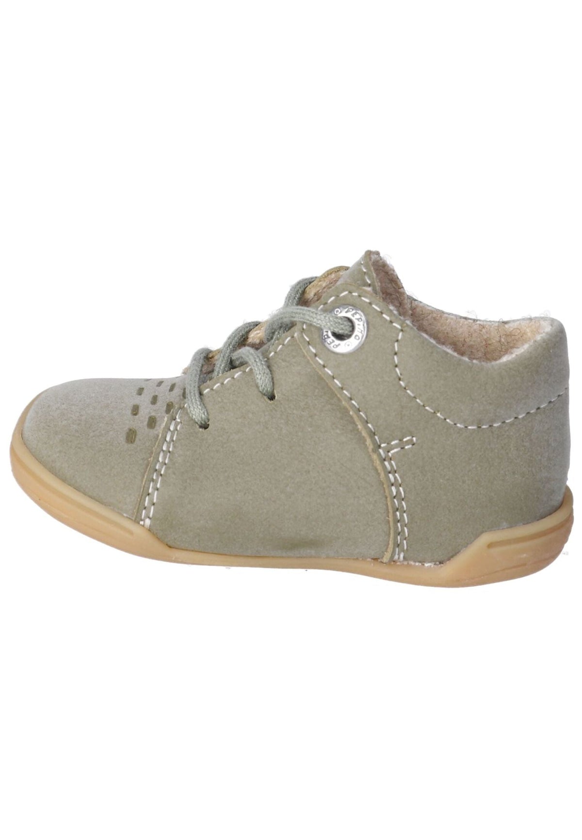 Pepino's lightweight "TED" boots offer little feet a secure hold for their first steps thanks to their easy lacing. Designed as a barefoot shoe, this unisex model features removable, felted loden insoles that are easy to clean after use. The genuine leather upper makes these first-walker shoes particularly easy to care for and dirt-resistant. A fine perforated pattern adorns the instep of the boots, while the soles are made of pure natural rubber. Available in a variety of colors, these shoes are ideal for special occasions.