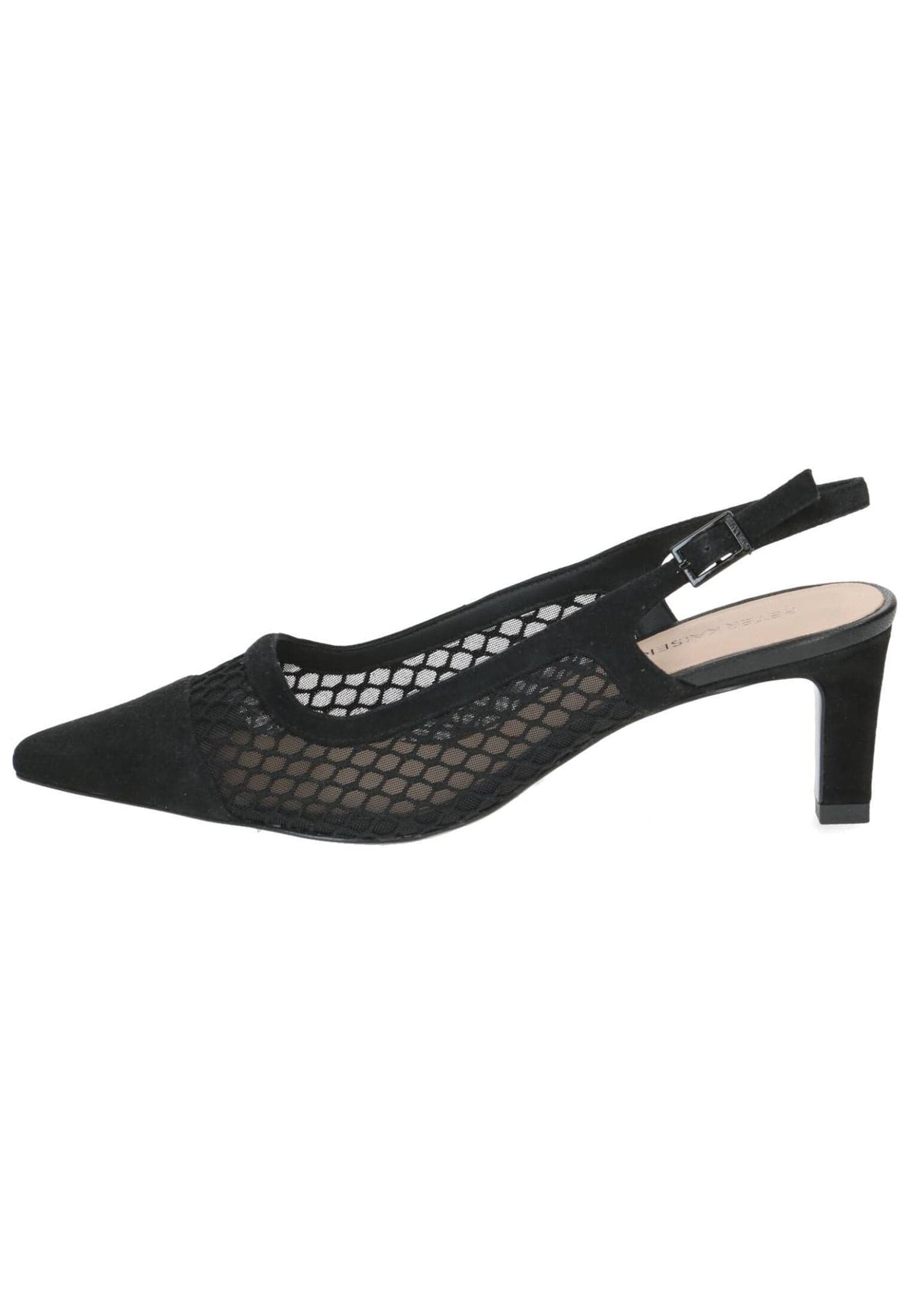 These slingback pumps from Peter Kaiser combine modern elegance with sophisticated lightness. The pointed toe creates a feminine silhouette, while the transparent mesh inserts lend the style a special, elegant touch. The adjustable heel strap ensures a secure fit and accentuates the delicate design. The slender heel adds a touch of elegance while offering comfortable wear – perfect for special occasions or a sophisticated everyday look.