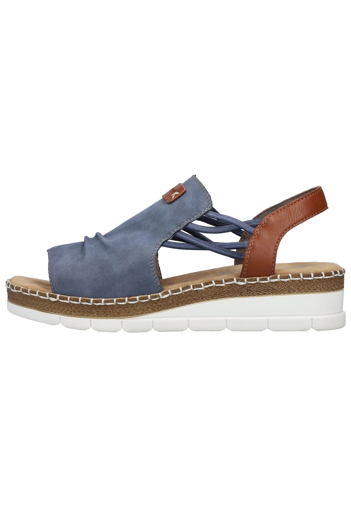 These RIEKER wedge sandals made of textile are the perfect companion for every step! Their modern design and exceptional comfort are equally impressive. The denim-look strap and elastic side bands allow the shoe to adapt perfectly to your foot. The narrow heel strap provides additional support and stability. The ultra-light and flexible sole with a wedge heel ensures a comfortable fit all day long.