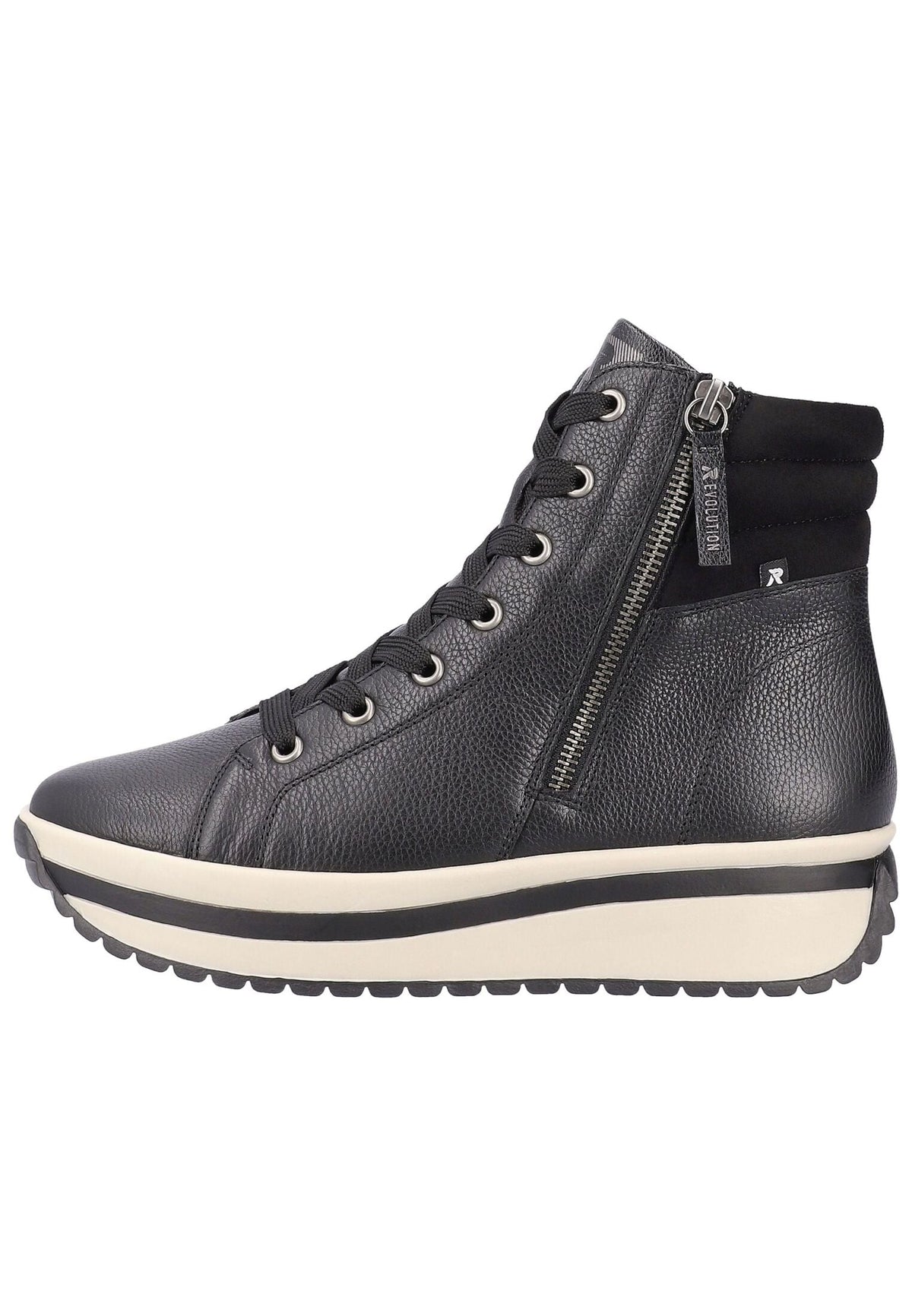 These elegant Rieker women's lace-up ankle boots, crafted from the finest smooth leather, offer the utmost in comfort. The clever combination of lacing and zipper allows for easy on and off. The TR sole with a feather-light, soft EVA core takes walking to a new level. The padded insole provides additional cushioning and can be removed if needed. Inside, a velvety soft velour lining pampers your feet, ensuring every step is pleasant and comfortable.