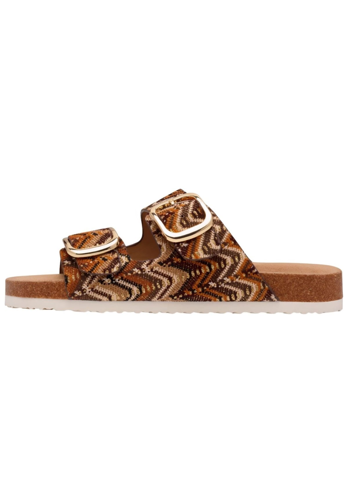 Especially on warm days, these mules are an absolute summer must-have. The large, statement buckles, which can be individually adjusted to the shape of your foot, beautifully showcase the high-quality textile with its dynamic pattern, making them perfect for wearing with shorts, a dress, or jeans. The lightly padded textile insole is comfortable on the foot, making this S.OLIVER shoe a must-have in your closet.