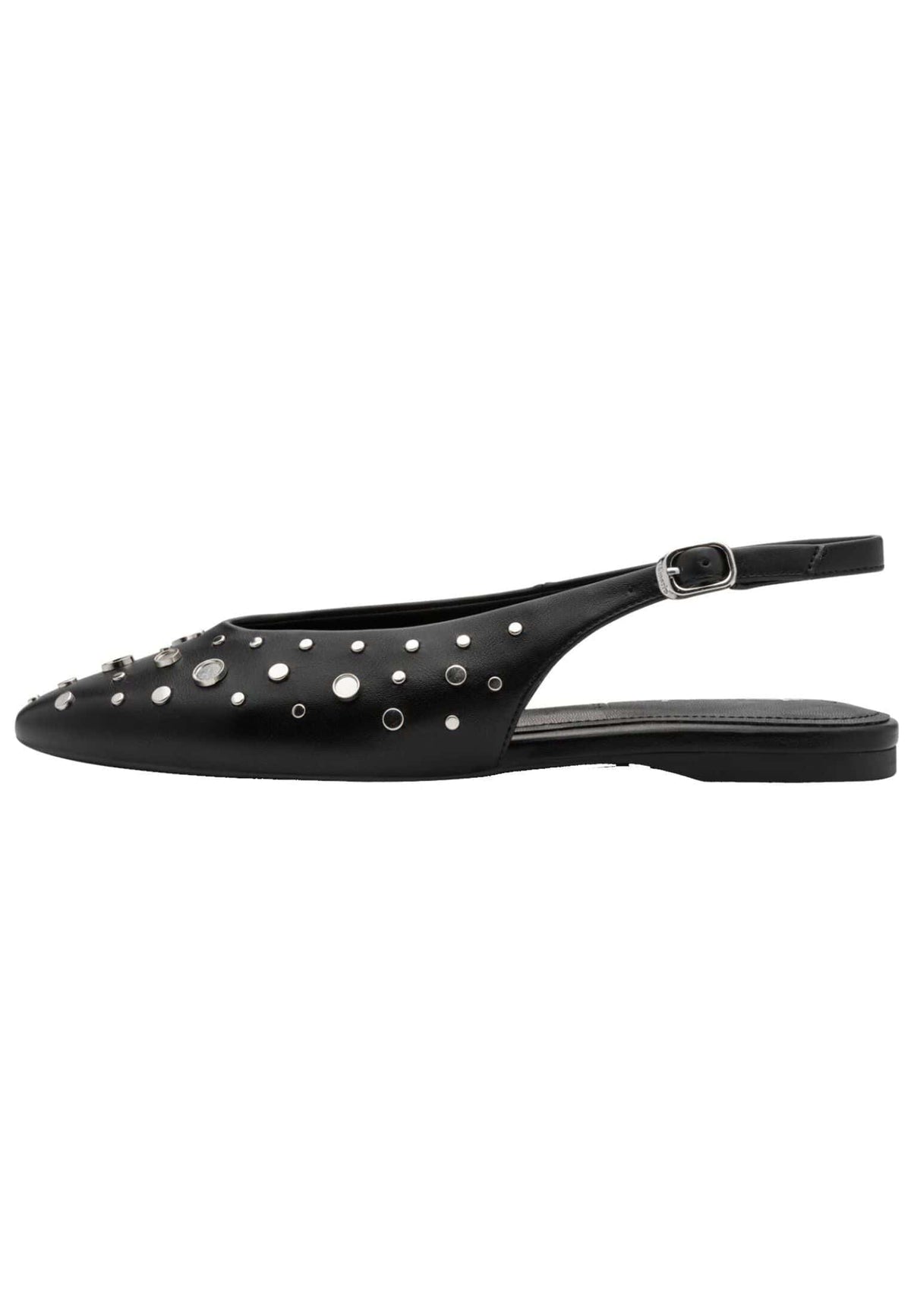Elegante Sling-Ballerina von Tamaris mit spitz zulaufender Form und dekorativen Metallapplikationen auf dem Vorderblatt, verstellbarem Fersenriemen mit feiner Schließe für optimalen Halt, angenehm gepolsterter Innensohle für hohen Tragekomfort sowie einer flexiblen Laufsohle, die den femininen Look stilvoll abrundet und sich vielseitig kombinieren lässt.
