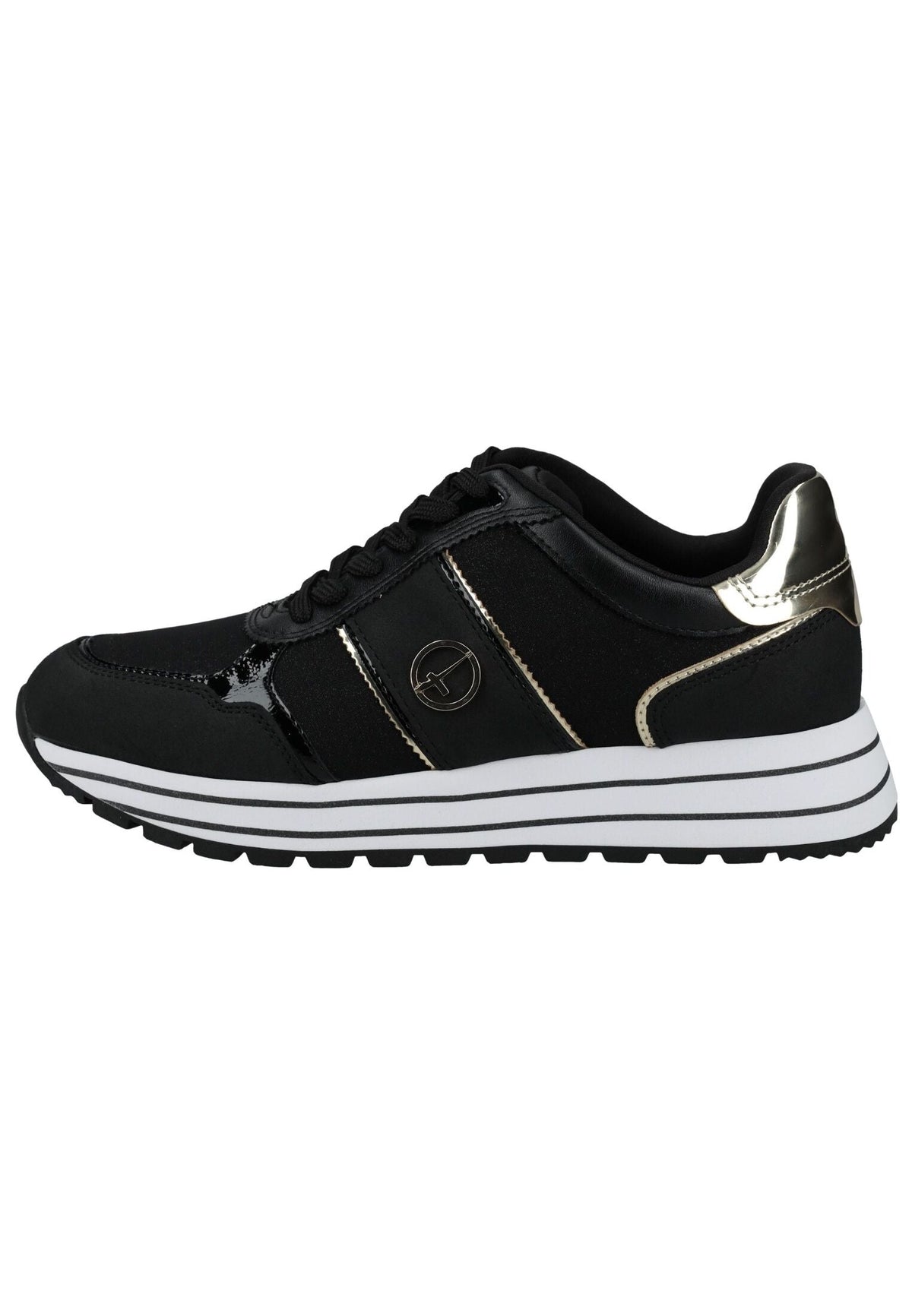 Achieve a cool look with this trendy platform sneaker from Tamaris. Crafted from a mix of leather and textile, the model features glitter details that give this shoe its own unique character. You're sure to love this sneaker from day one!