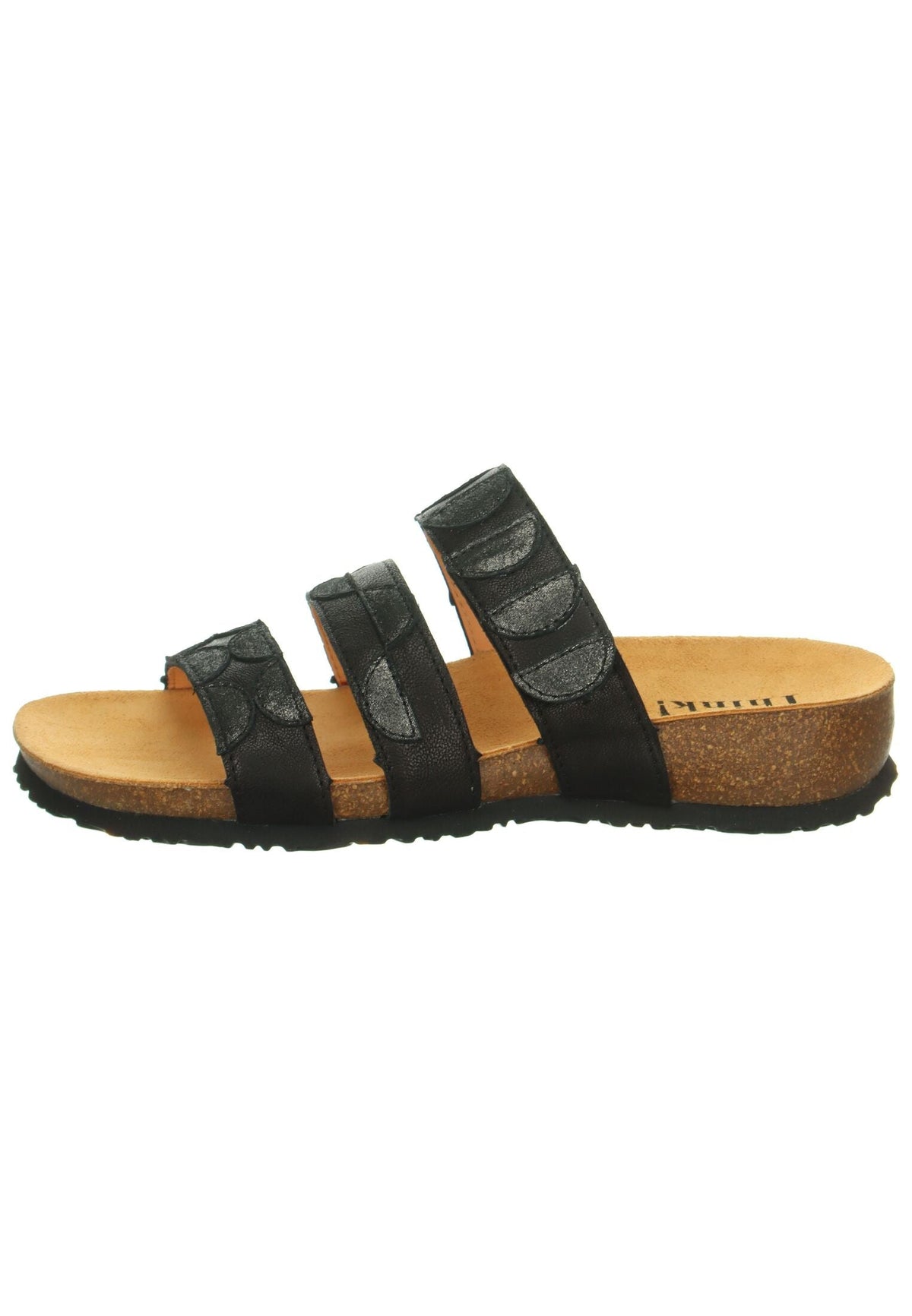 Start the season in style with these trendy mules made of high-quality leather from Think! The shimmering appliqués on the adjustable straps with hook-and-loop fasteners are a real eye-catcher. Their minimalist design makes these mules versatile.